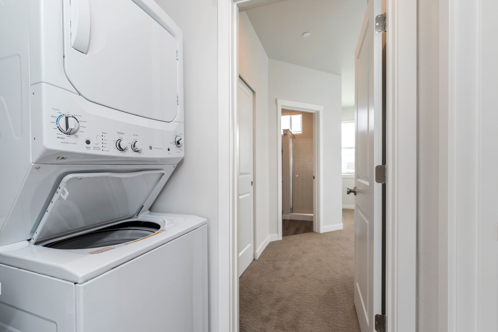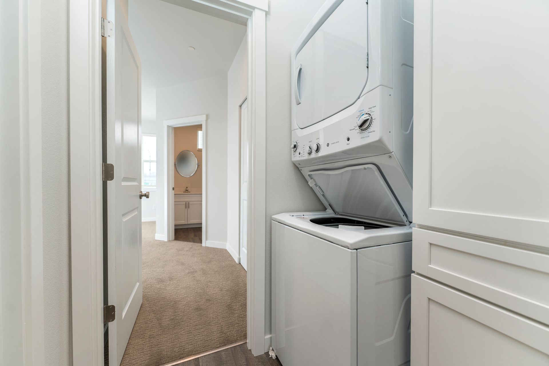 The top floor is dedicated to relaxation and functionality. You’ll find two carpeted bedrooms, including a master bedroom complete with a private full bathroom, ensuring ultimate privacy and comfort. An additional full bathroom is conveniently located off the hallway, perfect for guests and residents alike. Plus, a washer and dryer nook on the top floor adds extra convenience, making laundry days a breeze.